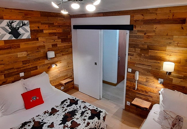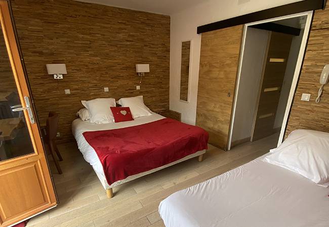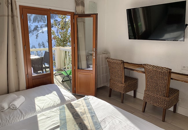 This family room with connecting door is ideal for a family of 2 adults and up to 3 children. It has 2 balconies of 4 m² facing south, offering a magnificent view of the mountains and the slopes of the valley.