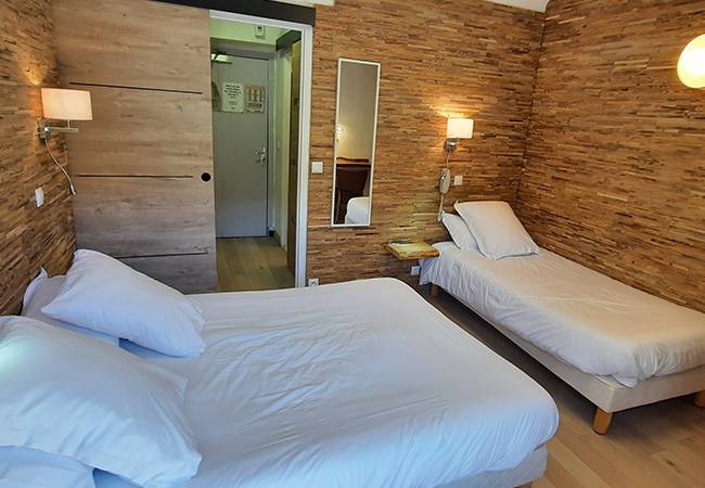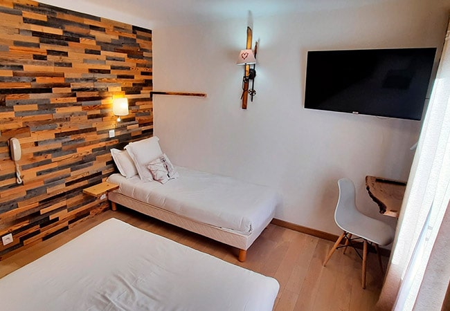 This triple room, ideal to welcome 2 adults and 1 child, proposed a south facing terrace of 6 sqm with mountains view.