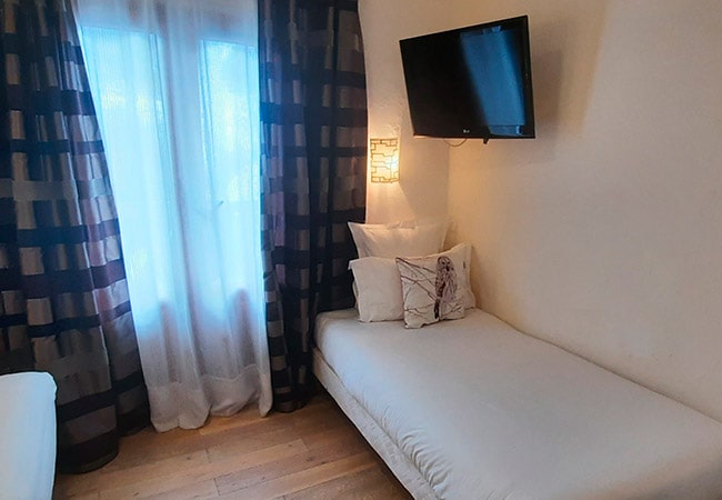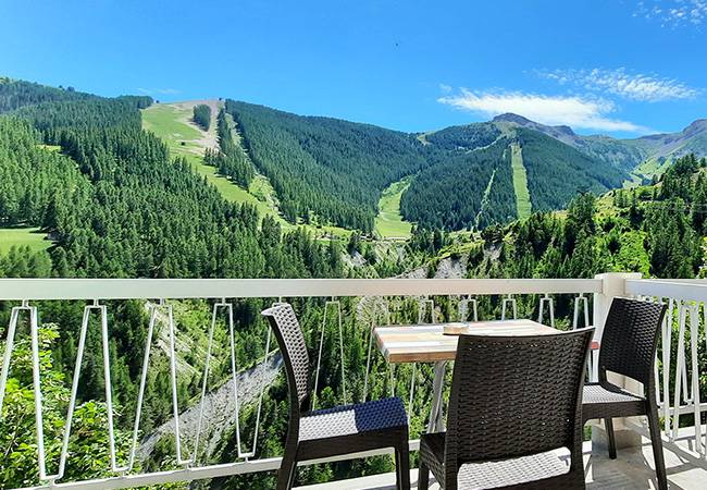 This triple room, ideal to welcome 2 adults and 1 child, has a south facing balcony of 2 sqm overlooking the mountains. The balcony size varies between 2 and 6 sqm.